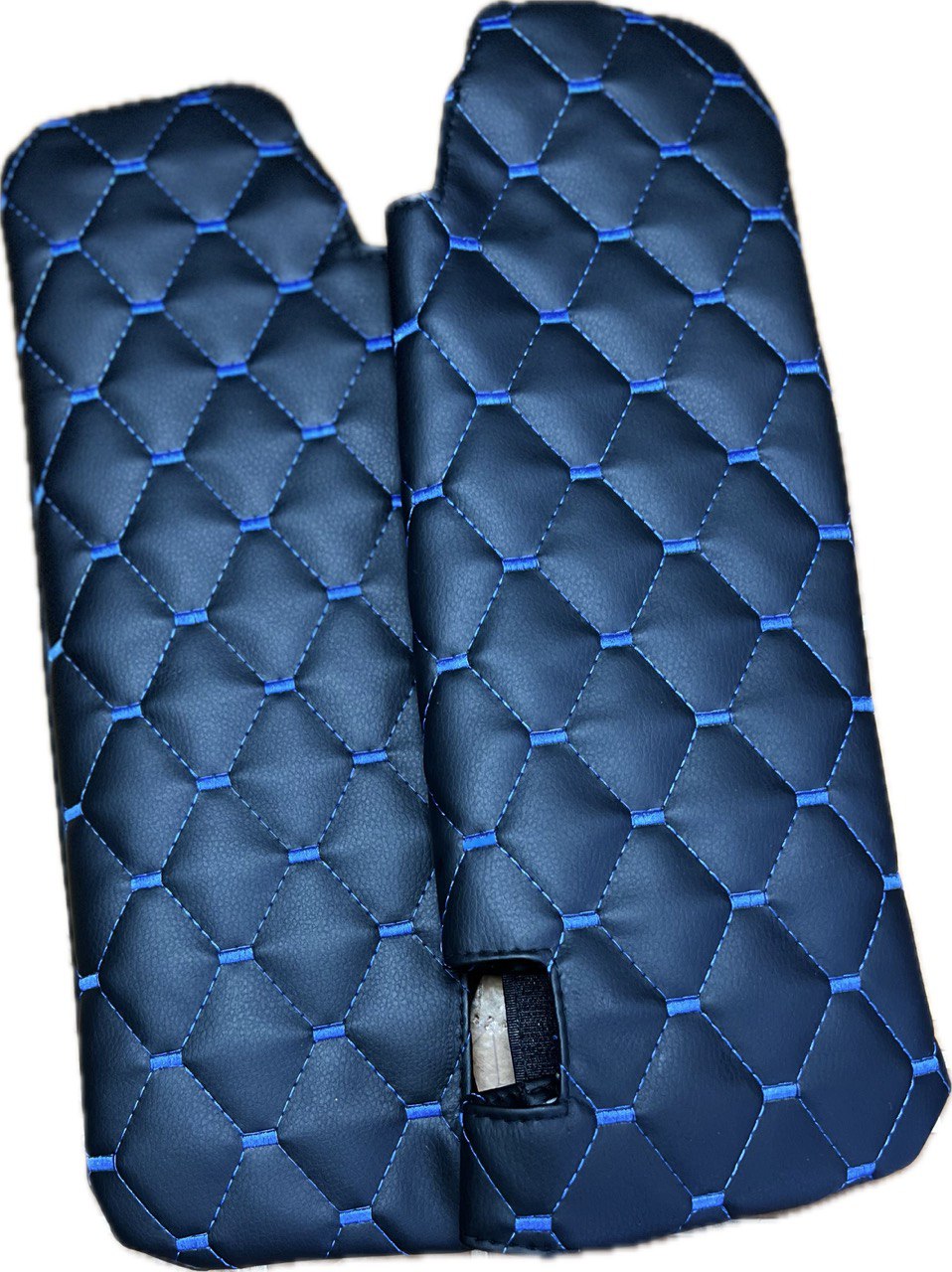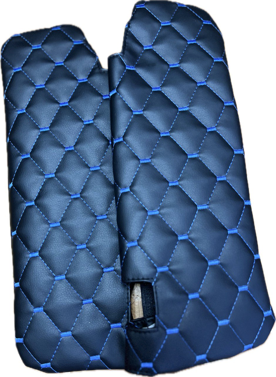 Чехол имеет синюю нить Рубин, которая создает красивый контраст с черным цветом автомобиля и делает его более заметным на дороге. Он также легко крепится на липучках, что позволяет быстро и просто установить или снять его в любое время.