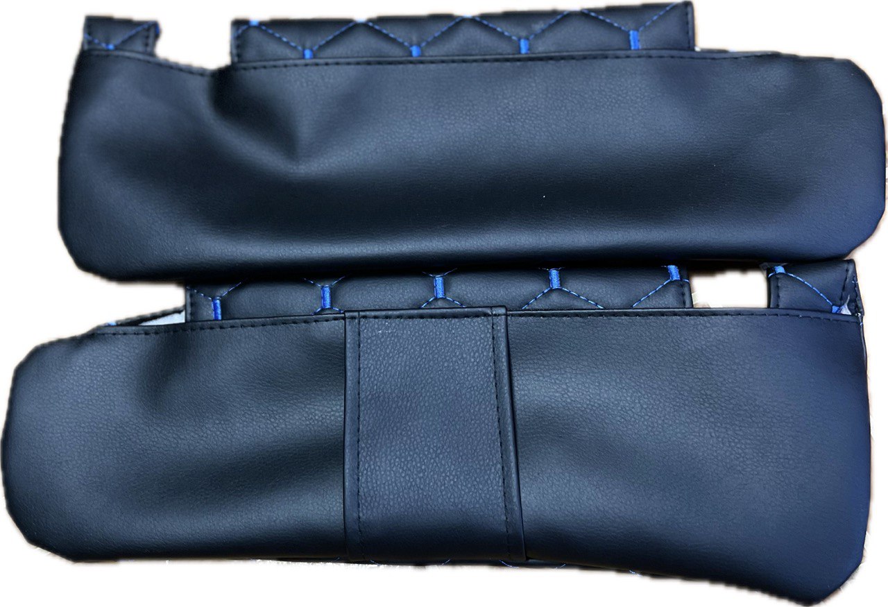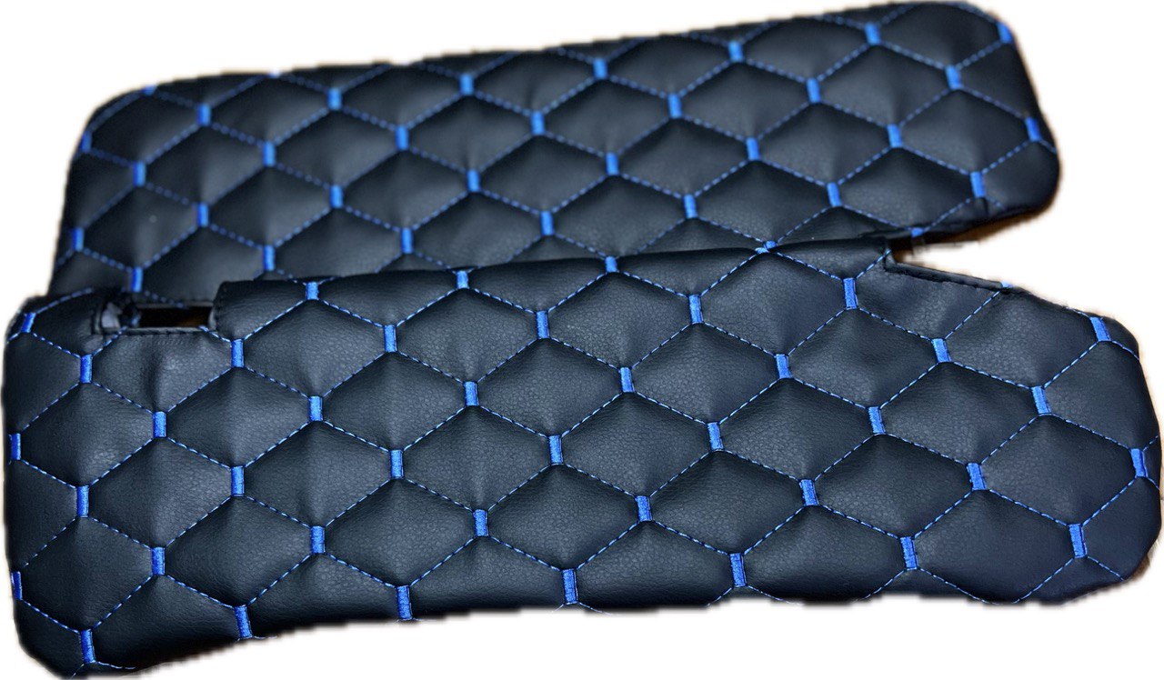 Чехлы на козырьки ЛАДА Ларгус, РЕНО Логан, Дастер, Сандеро (синяя нить Рубин) - это уникальный аксессуар, который поможет вам защититься от сильного солнечного света и сохранить комфорт при вождении автомобиля. Этот чехол изготовлен из высококачественных материалов, таких как поролон, спанбонд и экокожа, что обеспечивает долгую службу и удобство использования.